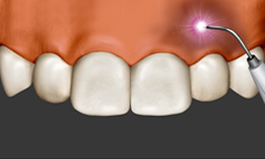 Using a laser or other specialized techniques, the melanin pigment distributed in the epithelial tissue of the gums is removed to expose healthy gums under the epithelial layer – a principle similar to skin peeling.